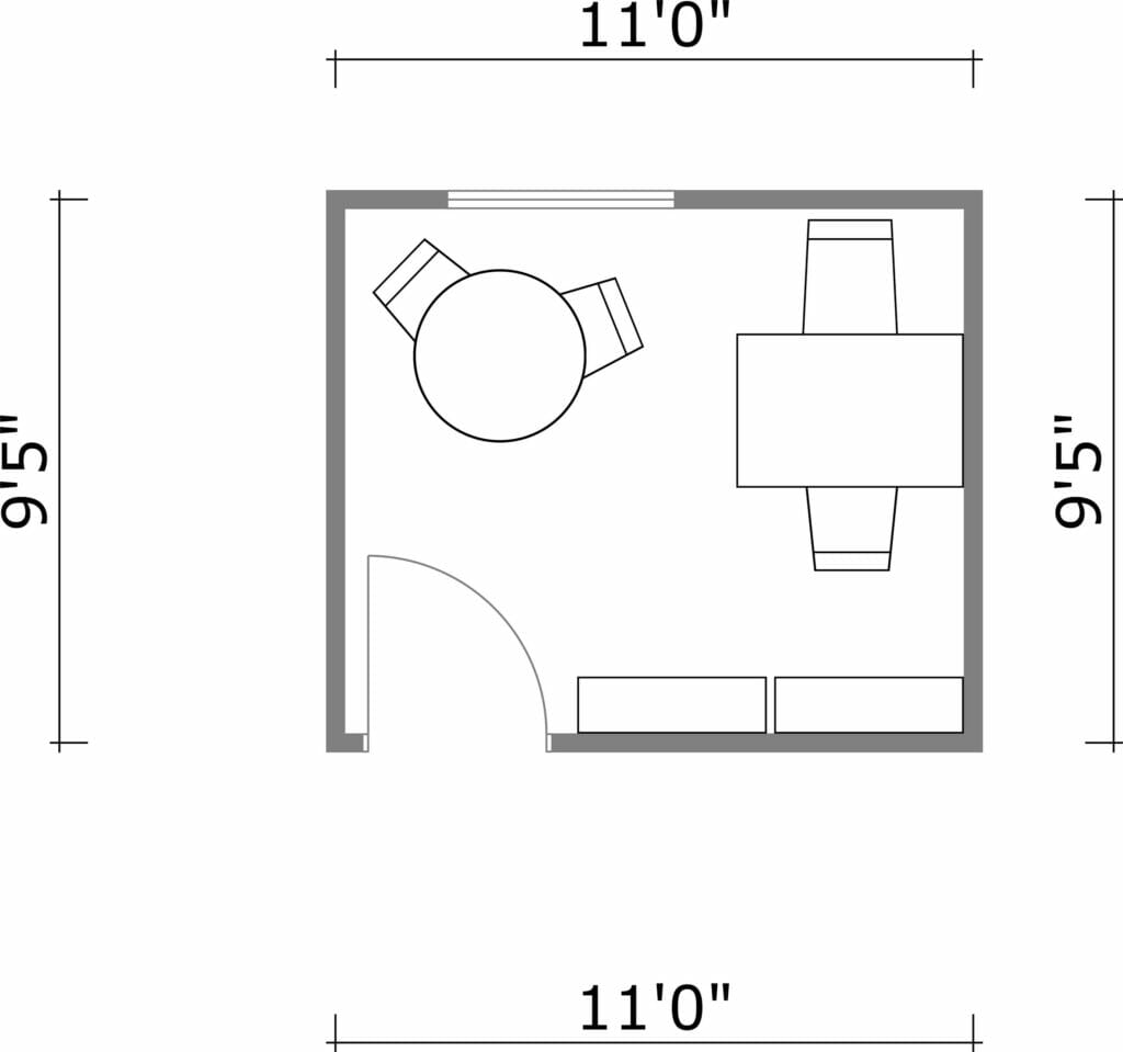 If you regularly host clients or co-workers, it’s important that your small office floor plan also supports their needs and provides a comfortable and welcoming space. This floor plan allows you to sit across from clients at your desk, for face-to-face discussions. It also provides a table and chairs if you need to sit side-by-side to review documents.